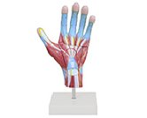 BST/MX20799 手掌解剖放大模型用人體模擬材料制成,放大2倍,可拆分為3部件,剝離皮膚及附屬物,切除部分掌長(cháng)肌腱,顯示拇短展肌、屈肌、小指短展肌、屈肌、拇長(cháng)屈肌腱、指淺屈肌腱、掌淺弓、指掌側總神jing、正中神jing、指掌側固有動(dòng)脈神jing,在掌心中取下指淺屈肌腱,可見(jiàn)掌弓深支、尺神jing深支、部分掌骨等結構,在掌骨位作橫斷,可觀(guān)其斷面結構,手背部切除部分指深肌腱,顯示骨向背側肌掌背動(dòng)脈、伸肌支持帶等。