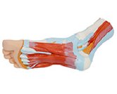BST/MX20807 足解剖模型用人體模擬材料制成,為右足解剖,剝離皮膚及附屬物,足背切除部分指長(cháng)伸肌腱,顯示伸肌支持帶、足背動(dòng)脈、腓深神jing 、弓狀動(dòng)脈、骨間背側肌、拇長(cháng)伸肌腱。足底示指短屈肌,拇展肌,取下指短屈肌及部分拇展肌,顯示足底內側動(dòng)脈、神jing、足底外側動(dòng)脈神jing、趾長(cháng)屈肌腱,取下部分趾長(cháng)屈肌腱及部分拇短收肌鈄頭,可視足底弓,足底總神jing,骨間足底肌等結構。