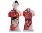 BST/MX20758 女性頭頸軀干模型用人體模擬材料制成,可拆分為15部件,顯示女性人體內臟**的位置及頭部解剖的形態(tài)和構造,表現呼吸、消化、泌尿,生zhi等主要人體解剖系統,頭頸半側顯示顱骨、咬肌、顳肌等結構,眼眶內有眼球,在頭頸部作矢狀切面,示鼻腔、口腔、喉腔、喉室、聲門(mén)裂、甲狀旁腺,胸腔內的兩肺額狀切面顯示肺內結構,心臟作冠狀解剖,表示左右房室的構造異同,心臟血管有上下腔靜脈、肺動(dòng)靜脈、主動(dòng)脈,供講解大小血液循環(huán)應用,包含軀干、頭2件、腦、肺2件、心2件、胃、肝、腎、胰和脾、腸、女性生zhi**2件